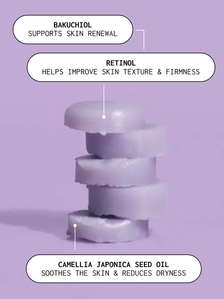 Um novo favorito da K-beauty para a sua rotina de cuidados com a pele chegou! O stick de retinol suavizante ajuda a reduzir linhas finas, reforçar a barreira cutânea e alisar a pele delicada ao redor dos olhos. Este sérum em formato prático é formulado para proteger a pele dos sinais de envelhecimento e suavizar as linhas finas. Retinol e bakuchiol atuam juntos para firmar e suavizar a área dos olhos, enquanto o extrato da flor Camellia Japonica mantém a hidratação. Pode ser usado uma vez por dia à noite ou duas vezes para melhores resultados. Contém vitamina A; considere a sua ingestão diária antes de usar.